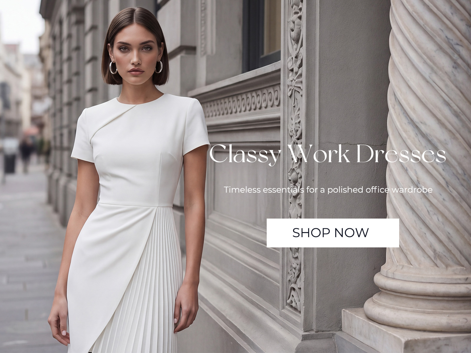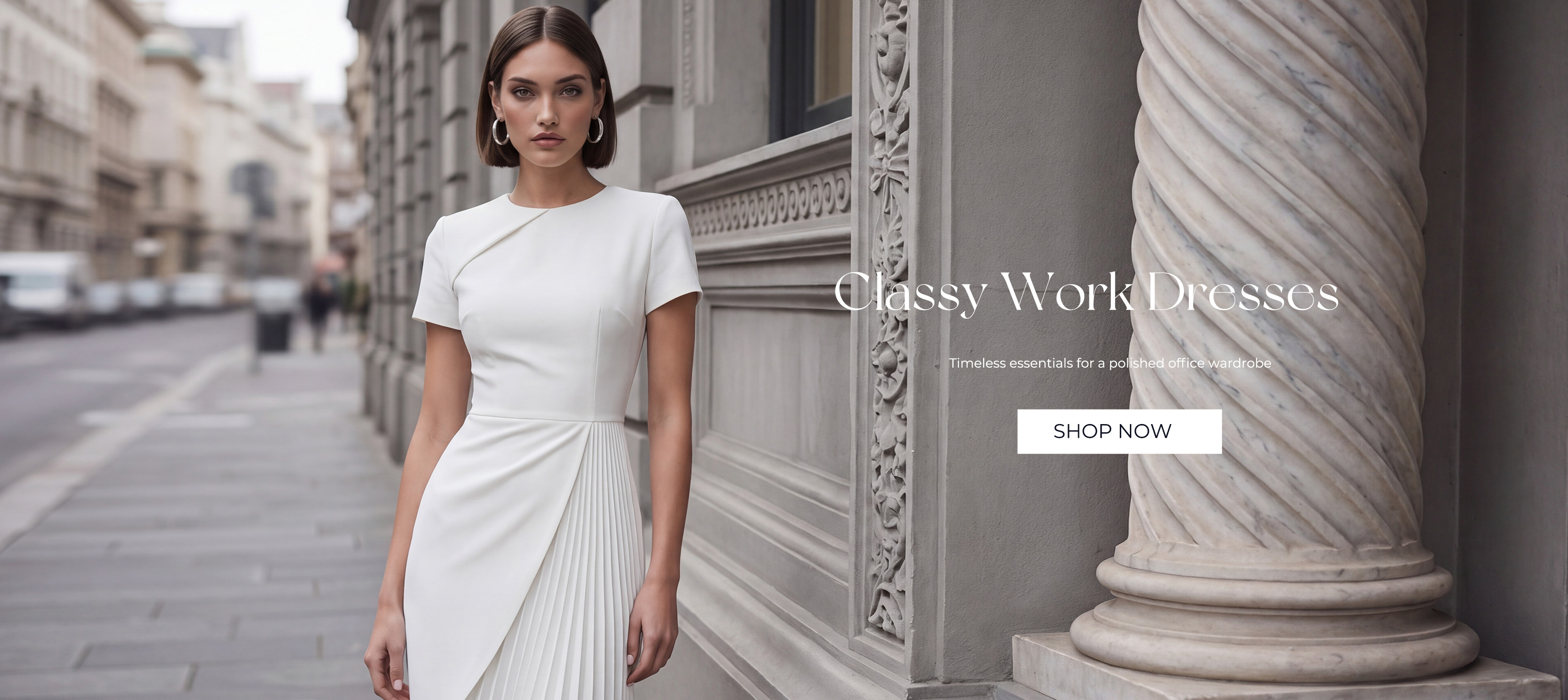 Simple White Satin Bodycon Pleated Short Sleeves Work Dress