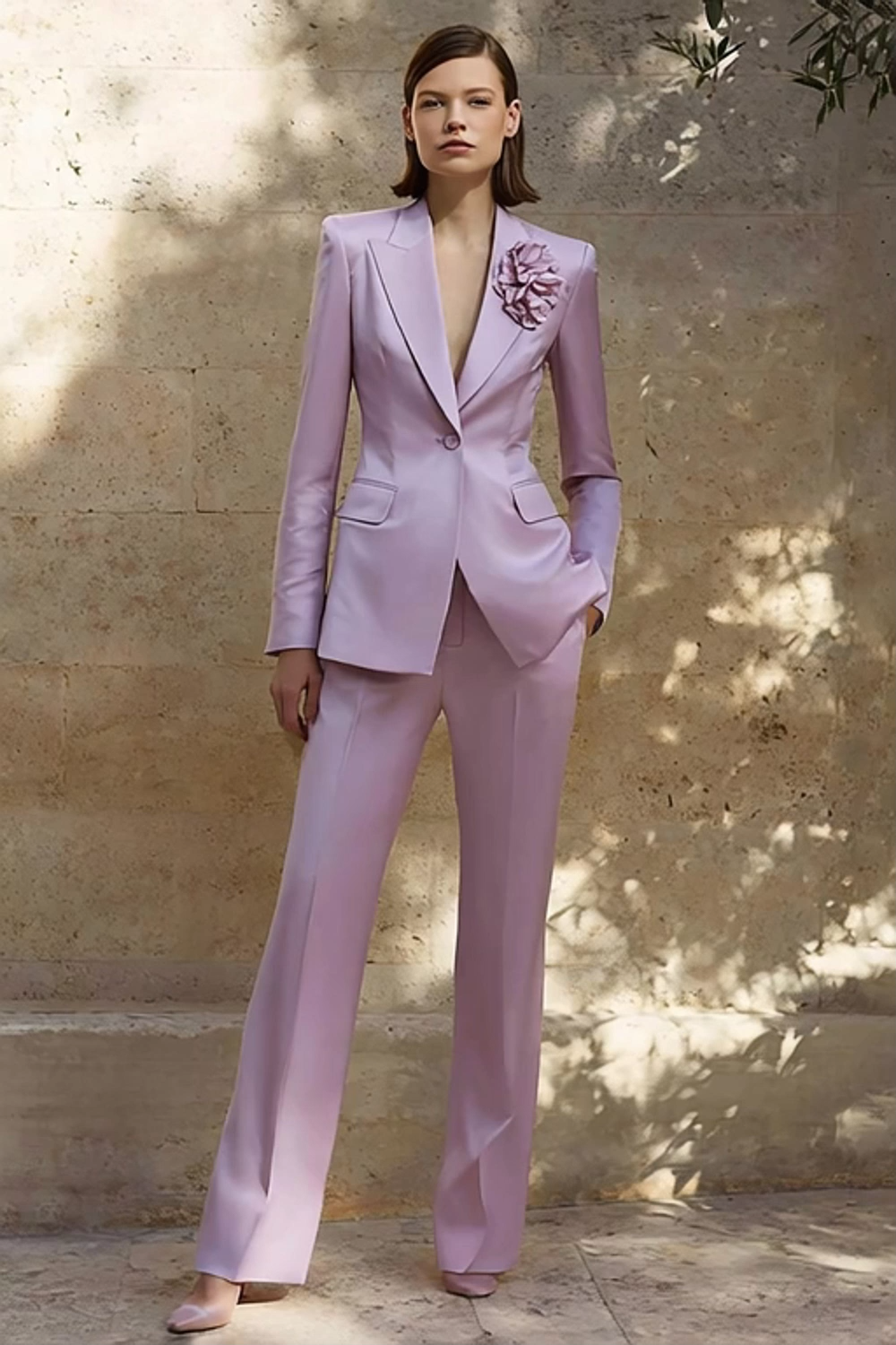 Floral Lilac 2 Piece Satin Peak Lapel Business Suits with Pockets